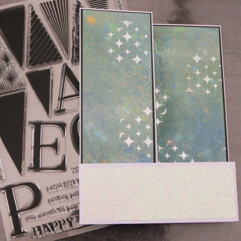 Once everything was dry, I added clusters of tiny stars using Shimmer Relief Paste in Pearl, which gave the background a lovely textured touch.