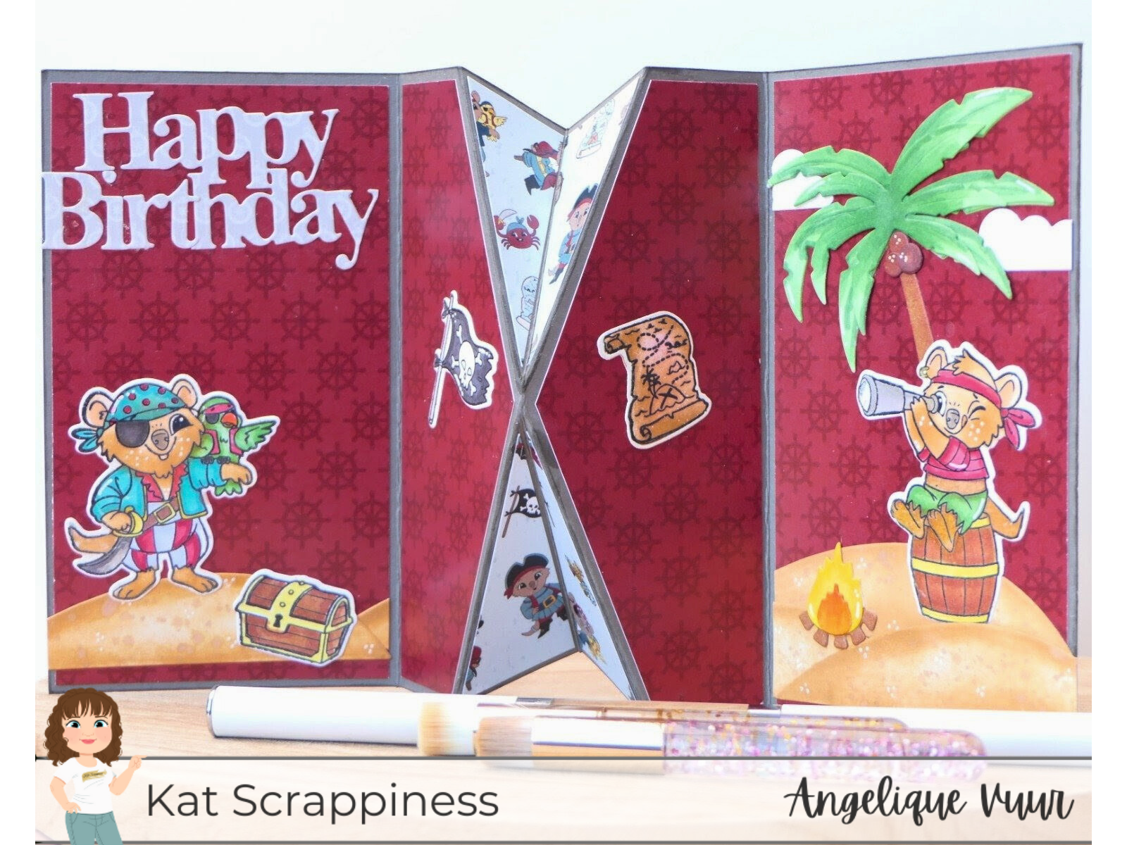 I used the adorable Pirate Quokkas collection from Kat Scrappiness. Aren’t they just the cutest little pirates? I created this fun fold card to give the scene a bit of movement and surprise. When you open it, the sweet characters and elements come to life across the panels — almost like a little story unfolding.
