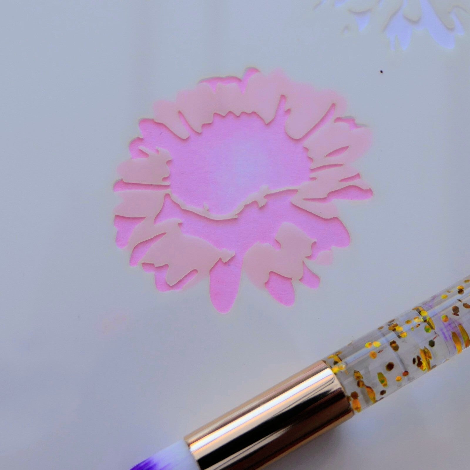 Using the Oopsie Daisy Layering Stencils, I blended the flowers onto a piece of white cardstock.