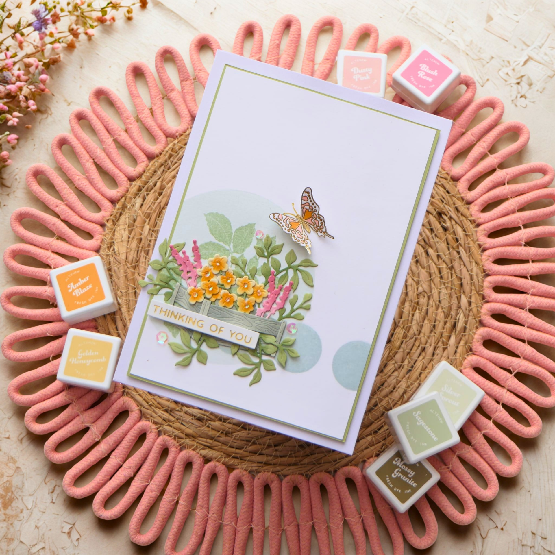 For the flowers I used warm tones from the Sun-Kissed Delights and Blushberry Bliss inks, and for the greenery the Sage Garden inks. This gives everything a softer, more natural look.